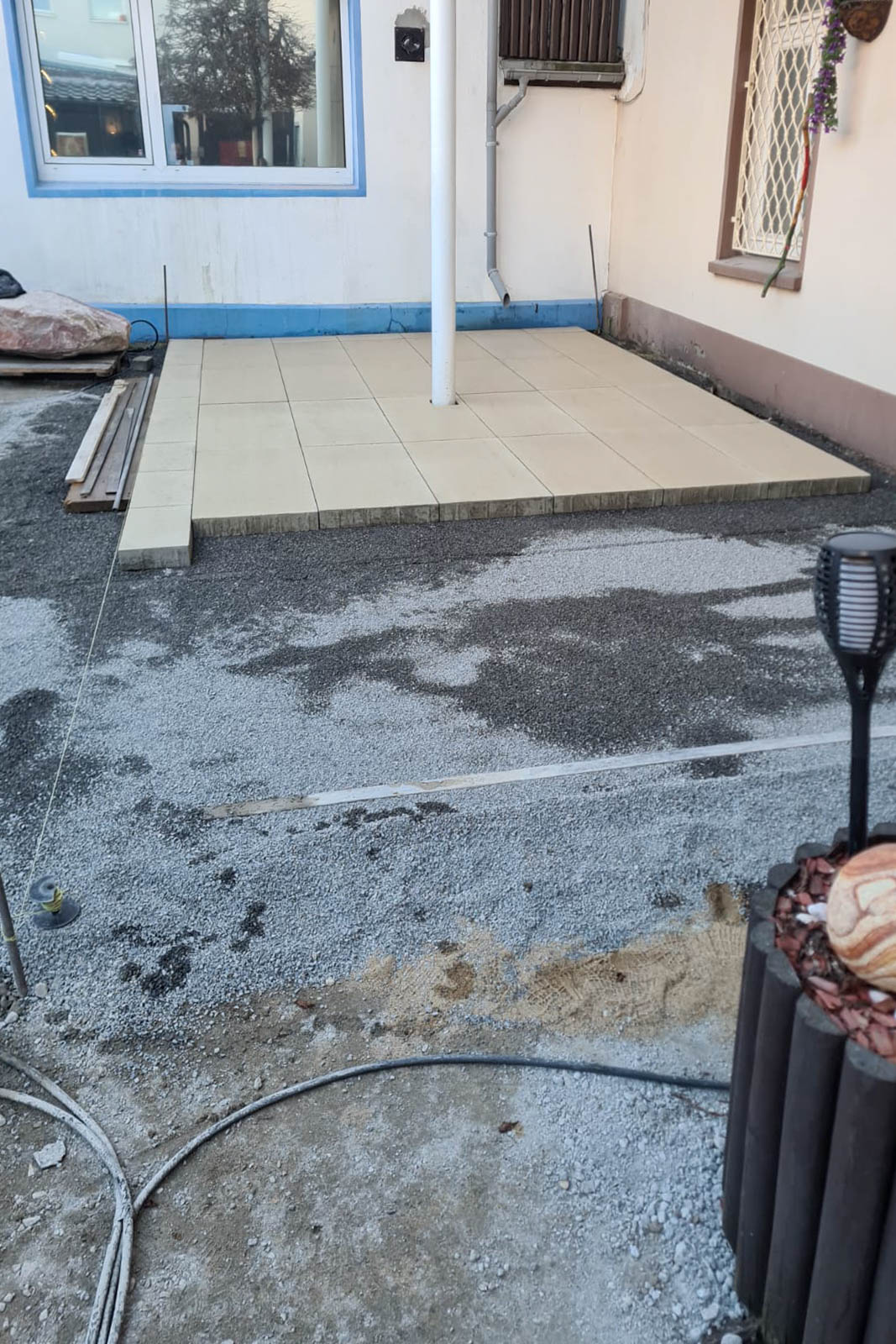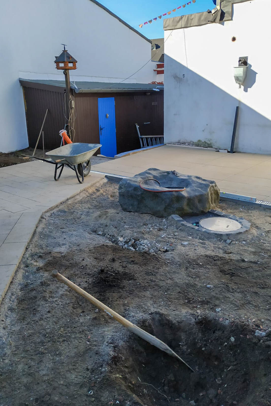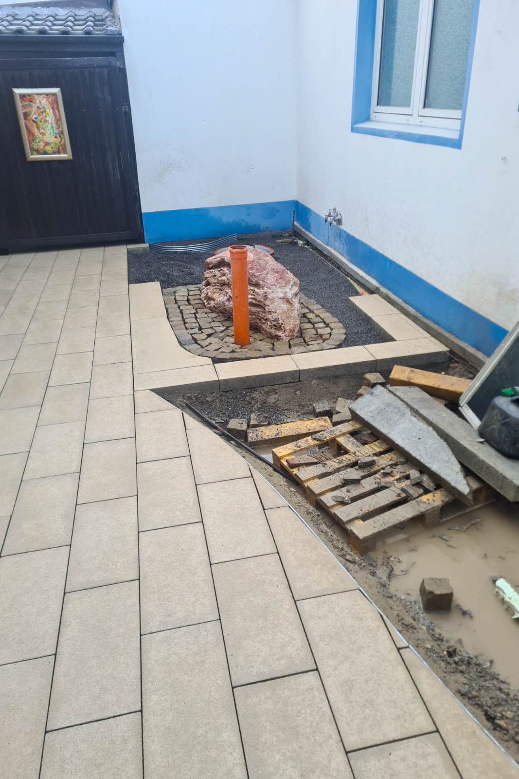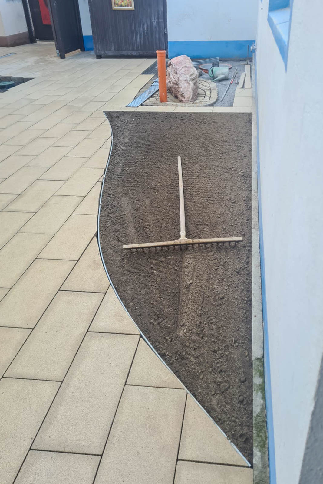 Hier ein Beispiel für eine Neugestaltung eines Innenhofes und dem Aussenbereich, nach den Vorgaben und Wünschen des Auftraggebers. Hier konnten mangels Platz und Möglichkeit, fast alle Arbeiten nur in Handarbeit durchgeführt werden.