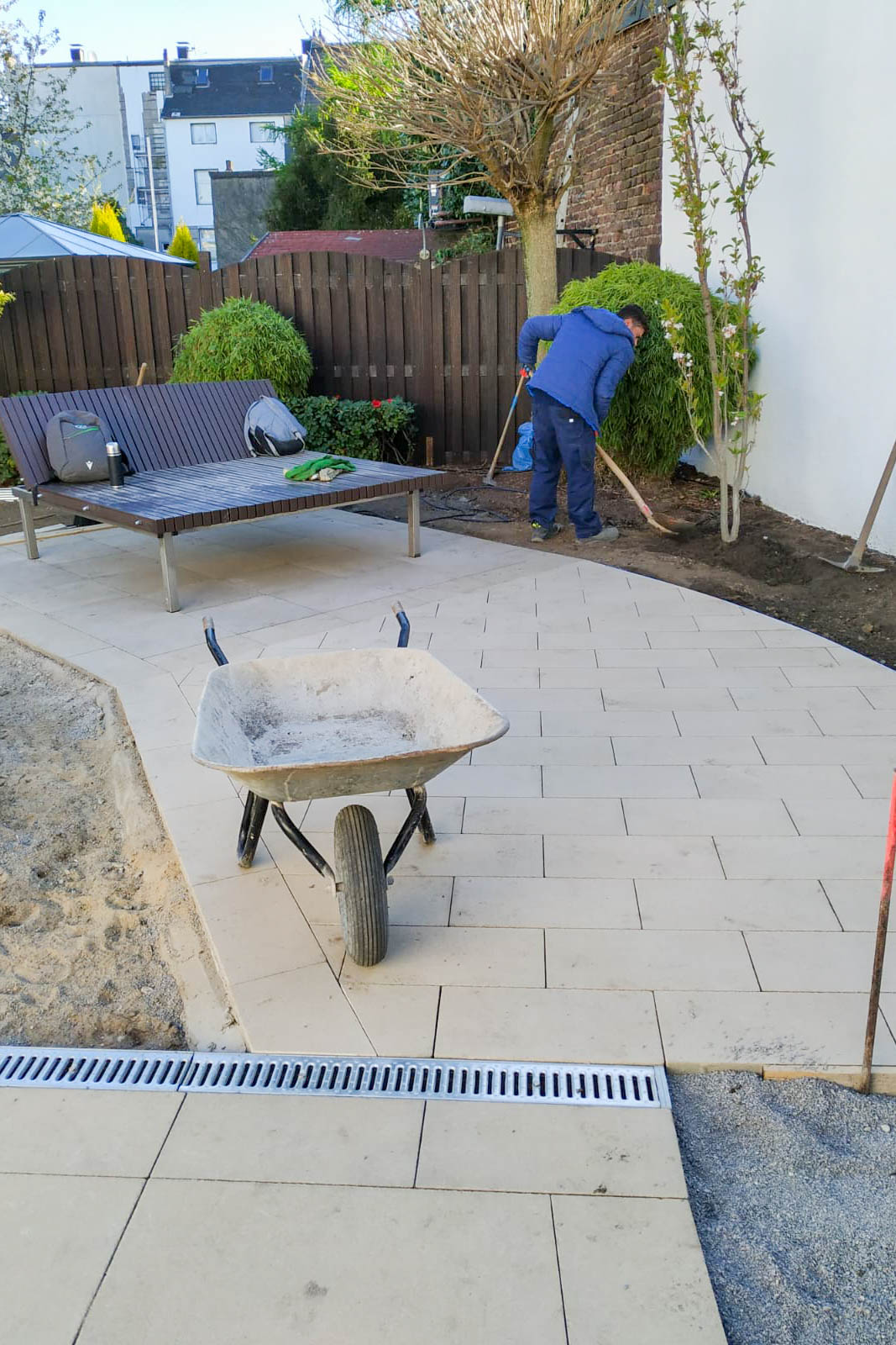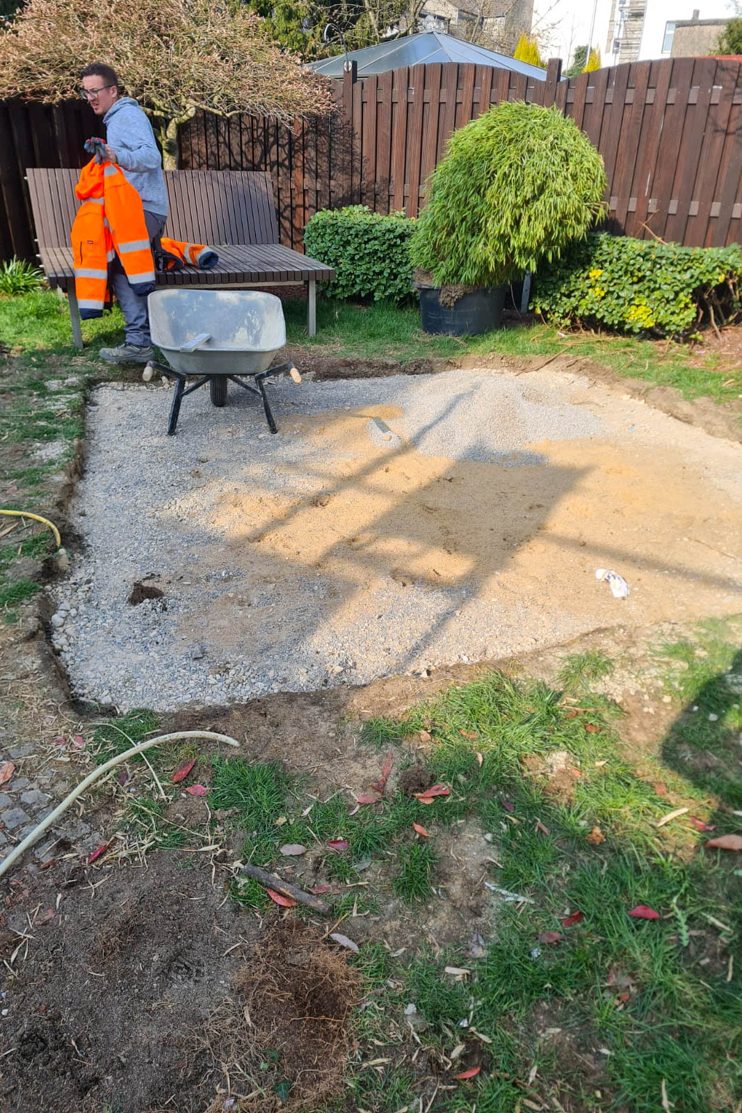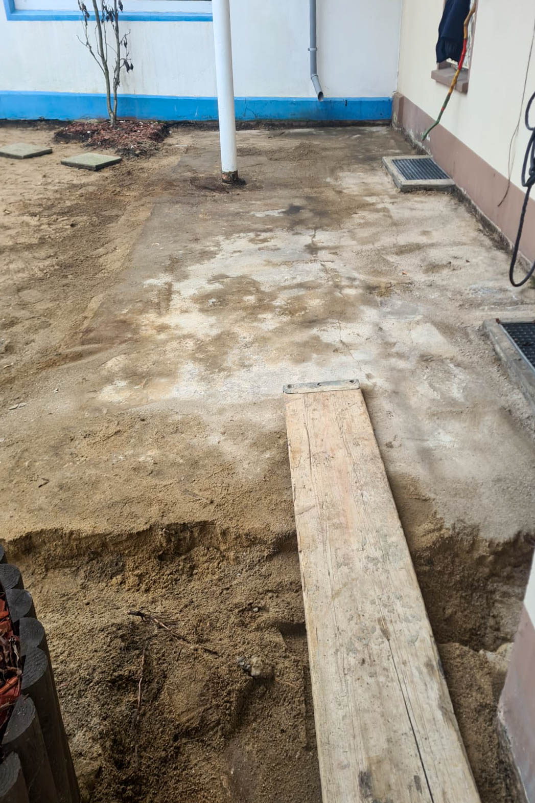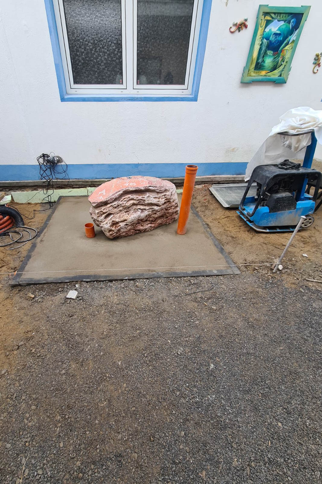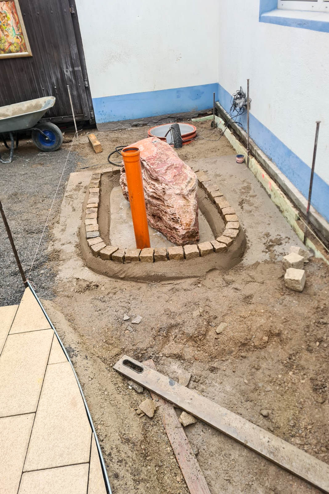 Hier ein Beispiel für eine Neugestaltung eines Innenhofes und dem Aussenbereich, nach den Vorgaben und Wünschen des Auftraggebers. Hier konnten mangels Platz und Möglichkeit, fast alle Arbeiten nur in Handarbeit durchgeführt werden.