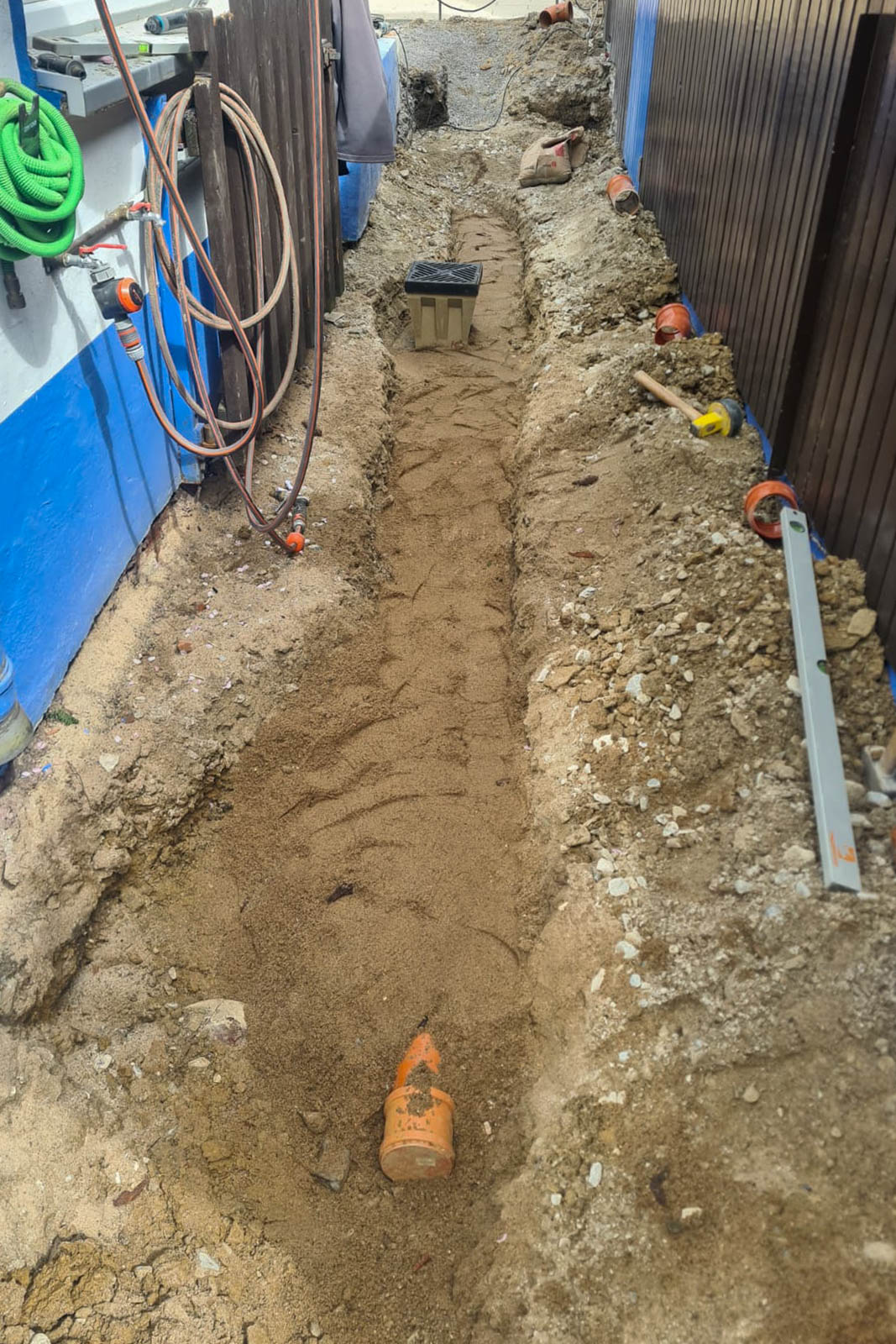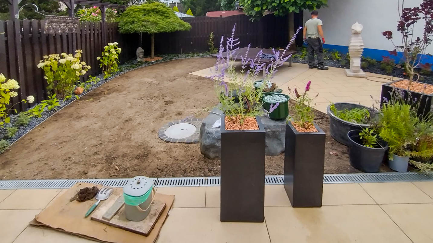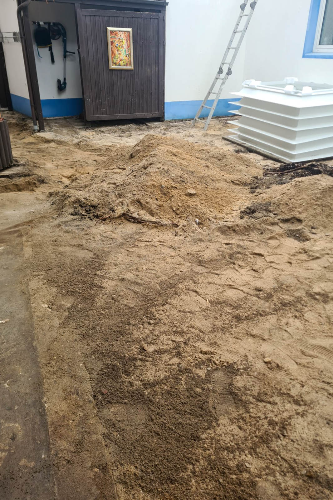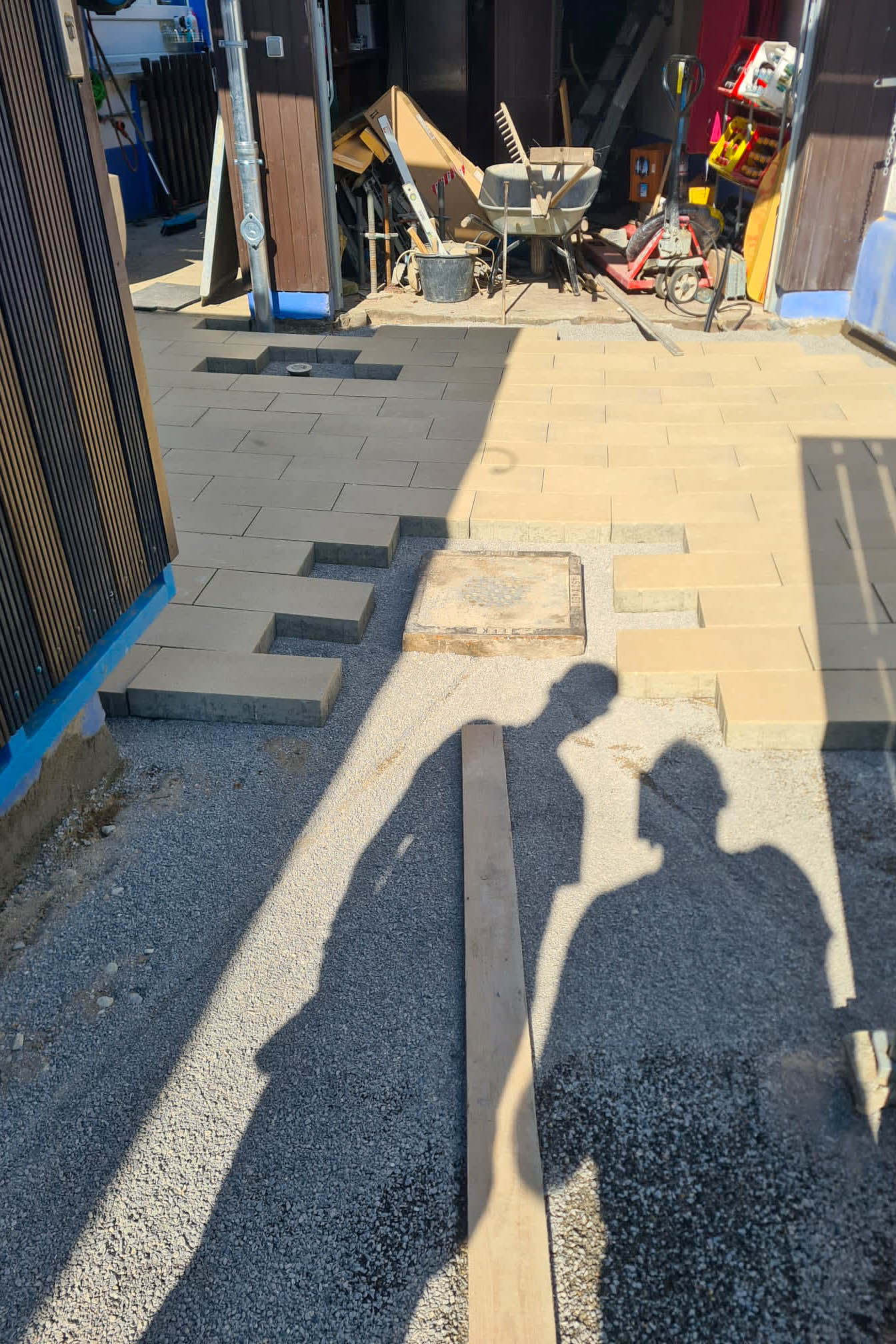 Hier ein Beispiel für eine Neugestaltung eines Innenhofes und dem Aussenbereich, nach den Vorgaben und Wünschen des Auftraggebers. Hier konnten mangels Platz und Möglichkeit, fast alle Arbeiten nur in Handarbeit durchgeführt werden.